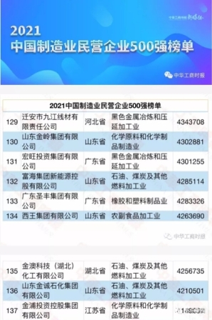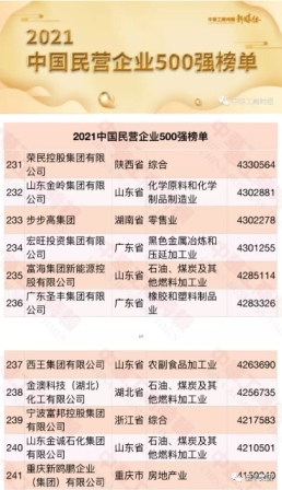 峰會以“構建新發(fā)展格局,貢獻民營企業(yè)力量”為主題,發(fā)布了民營企業(yè)500強榜單以及《2021中國民營企業(yè)500強調(diào)研分析報告》,圣豐集團以強大的競爭實力、先進的發(fā)展理念以及穩(wěn)健的經(jīng)營模式再度進入500強榜單,位列2021中國民營企業(yè)500強第236位,2021中國制造業(yè)民營企業(yè)500強第133位。