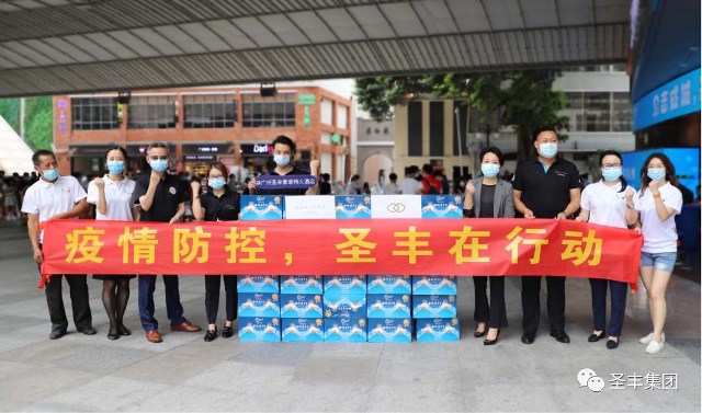 廣東圣豐集團緊急籌集五百多箱礦泉水,組織員工志愿者50余人,在越秀區(qū)北京路天河城百貨和天河區(qū)體育中心等核酸檢測點、疫苗接種點,向工作人員和市民派發(fā)礦泉水,支援廣州一線抗疫。南方都市報和廣東電視臺等新聞媒體也對圣豐集團此次捐贈活動進行了報道。