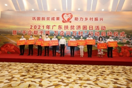 啟動(dòng)儀式上,李希書記代表廣東省委、省人大常委會(huì)、省政府、省政協(xié),向愛(ài)心企業(yè)家、愛(ài)心人士,以及為廣東省扶貧濟(jì)困事業(yè)作出積極貢獻(xiàn)的社會(huì)各界人士表示衷心感謝,向廣東扶貧濟(jì)困紅棉杯獲得者表示熱烈祝賀。他說(shuō),在隆重慶祝建黨100周年之際,我們舉行2021年廣東扶貧濟(jì)困日活動(dòng),表彰愛(ài)心企業(yè)和愛(ài)心人士,啟動(dòng)“千企幫千鎮(zhèn)、萬(wàn)企興萬(wàn)村”行動(dòng),具有特殊的意義。多年以來(lái),廣大愛(ài)心企業(yè)家和愛(ài)心人士一直踴躍參與廣東扶貧濟(jì)困日活動(dòng),投身脫貧攻堅(jiān)、鄉(xiāng)村振興和東西部扶貧協(xié)作、對(duì)口支援工作,充分彰顯了服務(wù)大局、服務(wù)社會(huì)的責(zé)任擔(dān)當(dāng)。希望大家深入學(xué)習(xí)貫徹習(xí)近平總書記對(duì)廣東重要講話和重要指示批示精神,繼續(xù)發(fā)揚(yáng)扶貧濟(jì)困優(yōu)良傳統(tǒng),助力我省全面推進(jìn)鄉(xiāng)村振興,更好促進(jìn)共同富裕。一是繼續(xù)支持廣東鞏固拓展脫貧攻堅(jiān)成果,對(duì)幫扶的群眾和項(xiàng)目扶上馬送一程,保持幫扶工作連續(xù)性、穩(wěn)定性,同時(shí)影響帶動(dòng)更多企業(yè)、更多愛(ài)心人士、更多社會(huì)資源投向扶貧濟(jì)困事業(yè)。二是積極投身廣東鄉(xiāng)村振興事業(yè),積極參與“千企幫千鎮(zhèn)、萬(wàn)企興萬(wàn)村”行動(dòng),將企業(yè)優(yōu)勢(shì)和鄉(xiāng)村資源稟賦結(jié)合起來(lái),打好產(chǎn)業(yè)牌、市場(chǎng)牌、科技牌、文化牌推動(dòng)荔枝、菠蘿、茶葉等特色農(nóng)業(yè)高質(zhì)量發(fā)展,實(shí)現(xiàn)農(nóng)村和企業(yè)互利共贏發(fā)展。三是搶抓歷史機(jī)遇、積極主動(dòng)作為,在參與“雙區(qū)”建設(shè)、助力廣東打造新發(fā)展格局戰(zhàn)略支點(diǎn)中不斷做大做強(qiáng)做優(yōu)。省委、省政府將一如既往支持廣大企業(yè)扎根廣東發(fā)展,努力營(yíng)造市場(chǎng)化、法治化、國(guó)際化營(yíng)商環(huán)境,為企業(yè)成長(zhǎng)創(chuàng)造更好條件。